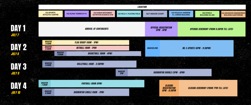 The Muafakat Games is an annual sports event organised by Malaysian students in tertiary institutions across Australia, supported by Education Malaysia Australia (EMA) in Sydney. It aims to foster teamwork, unity, and a sense of belonging among Malaysians from diverse backgrounds and cultures. By promoting sportsmanship and cultural celebration, the event brings together past and present students under a shared vision, strengthening ties to their heritage and building a vibrant, unified Malaysian community abroad. Through competition and camaraderie, the Muafakat Games bridges generations, nurtures holistic growth, and empowers the Malaysian spirit in Australia.